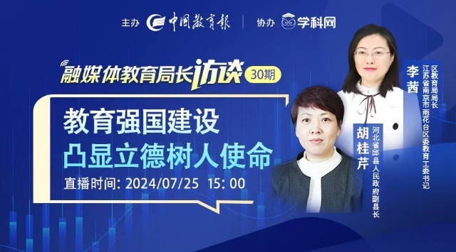 本期,《中國教育報》融媒體教育局長訪談欄目邀請到河北省邱縣人民政府副縣長胡桂芹女士和江蘇省南京市雨花臺區委教育工委書記、區教育局局長李茜女士做客直播間。