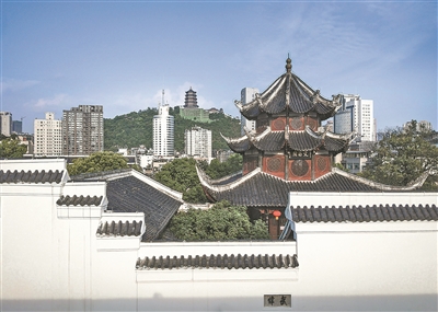 君子亭再往東就是文昌閣了,文昌閣在老東門城墻上,是全國獨一無二的三層三檐九角不等角攢尖頂閣樓,在建筑界頗負盛名。建于明萬歷年間,數次毀于兵火后又重建,如今保存完好,是古時供奉文昌帝君的地方。文昌閣的兩座門楣上鐫刻著“文經”“武緯”,明清兩代的貴陽讀書人經常到這里拜文昌帝君,祈求文昌帝君保佑自己金榜題名。