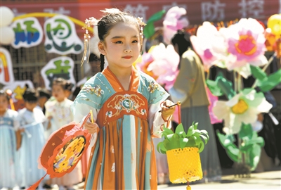 近日,在江西省德興市銅礦中區幼兒園,孩子們身穿古裝開心地賞花燈、猜燈謎。參加此次展示活動的花燈全部都是該園孩子們在老師和家長的幫助下,利用閑置物品制作而成,各種造型別致的環保花燈,讓人看了賞心悅目。卓忠偉 攝