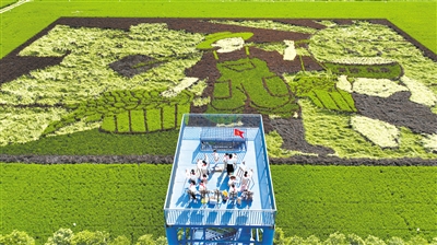 9月11日,在江蘇省東臺市五烈現(xiàn)代農(nóng)業(yè)示范園,在老師的指導(dǎo)下,東臺市實驗小學(xué)美術(shù)社團的隊員們觀賞、描繪稻田畫美景,體驗農(nóng)耕文化,豐富假期生活。練益華 攝