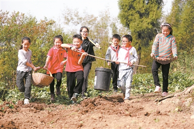 10月23日,在貴州省黔西市甘棠鎮同心村,孩子們正搬運紅薯。今年以來,甘棠鎮婦聯、紀委聯合該鎮14個村和社區在周末開展“村社課堂 體驗農耕”活動,組織孩子們走進田間地頭,體驗農耕。周訓超 攝