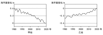 (4)分析甲站區域與乙站區域海岸線水平變化的方向和幅度的差異。