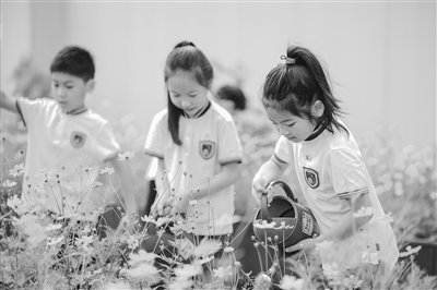 用“實驗”賦能。學(xué)校開啟了“艾小語自然實驗室”計劃,把校園變成大自然的后花園,變成學(xué)生探索創(chuàng)造的樂園,并喊出了“萬物皆可實驗”的口號。校園里開辟了每個年級專屬的自然實驗室,取名為“七色花田”“青門綠玉”等,學(xué)生化身成為少年作物栽培學(xué)家、育種學(xué)家、生物化學(xué)家,在有智慧的勞動中發(fā)展思維。