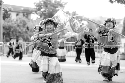 11月8日,貴州省黔西市鐘山鎮(zhèn)中心幼兒園的孩子們在練習舞龍。近年來,該幼兒園把傳統(tǒng)的舞龍文化融入幼兒教育課程,在讓孩子們開心、健康學習的同時,感受傳統(tǒng)舞龍文化的魅力。周訓超 攝