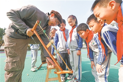 11月25日,浙江省湖州市德清縣新安鎮勾里中心學校邀請木工工藝師走進校園,為學生講解木工知識,傳授木匠技藝。近年來,該校結合自身實際,充分挖掘周邊資源,不斷豐富勞動教育的形式與內容,通過開設田間勞動、木匠工藝等豐富多彩的課程,讓學生們增強動手實踐能力,體驗勞動的快樂。