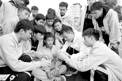 11月25日,西北工業(yè)大學(xué)第24屆研究生支教團(tuán)在廣西柳州市融水苗族自治縣思源實(shí)驗(yàn)學(xué)校舉辦“三航筑夢”科技文化節(jié),學(xué)生們在航模飛行、水火箭放飛和知識競答等活動(dòng)中,了解航空、航天、航海科技知識。龍濤 攝