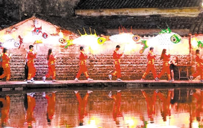 多年來,安徽師大體育學(xué)院副院長余濤致力于推動民俗體育進(jìn)校園,依托高校資源助力非遺文化傳承、發(fā)展。他組建團(tuán)隊深入農(nóng)村進(jìn)行實地調(diào)研,不斷挖掘民俗體育文化與高校體育的結(jié)合點。本次魚燈表演的創(chuàng)作靈感就來自安徽省黃山市歙縣汪滿田村的民俗魚燈。