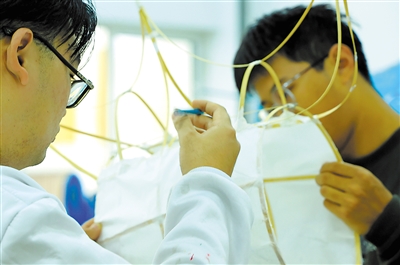 為了制作出原汁原味的魚燈,安徽師大組織師生專程向此項技藝的非遺傳承人求教,并請他教學(xué)生制作魚燈。學(xué)校體育學(xué)院、美術(shù)學(xué)院學(xué)生通力合作,歷時一個多月,親手制作了81只魚燈。