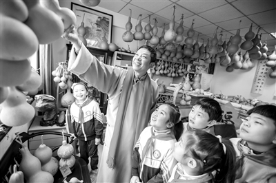 日前,江蘇省海安市教師發(fā)展中心附屬小學(xué)的孩子們在聽“非遺”傳承人介紹“葫蘆烙畫”技藝。該校組織學(xué)生探訪當?shù)亍昂J烙畫”傳承人,了解和體驗“葫蘆烙畫”技藝,感受中國傳統(tǒng)文化藝術(shù)的魅力。