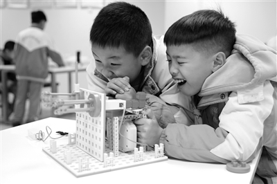 圖為湖南省湘西土家族苗族自治州溶江小學人工智能機器人社團的學生們在體驗學習。“雙減”政策實施以來,溶江小學開設多種科技社團,在落實“雙減”工作的同時,放飛學生們的科技夢想。彭彪 攝