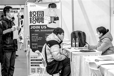 2月16日,學生在西安建筑科技大學2023屆畢業生春季就業洽談會上尋找合適的崗位。