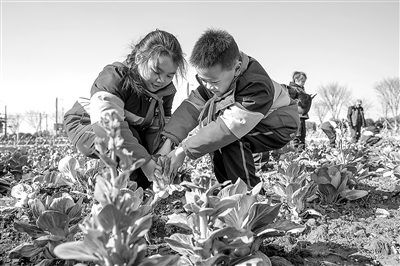 2月15日,在浙江省湖州市德清縣禹越鎮(zhèn)愛心菜園,徐家莊中心小學(xué)學(xué)生正在采收蔬菜。新學(xué)期伊始,該校開展勞動(dòng)實(shí)踐教育活動(dòng),學(xué)生們體驗(yàn)蔬菜采收、挖土、澆水等特色勞動(dòng)課程,讓學(xué)生們感受勞動(dòng)的艱辛和豐收的快樂,培養(yǎng)學(xué)生勤儉節(jié)約、熱愛勞動(dòng)的好習(xí)慣。王樹成 攝