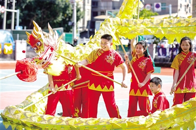近日,福建省福州市倉山區高湖小學,學生在體育課上訓練和表演福州高湖舞龍燈。近年來,倉山區各中小學聚焦非遺傳統體育項目,不斷豐富特色體育課程內容,讓學生在豐富多彩的體育活動中傳承文化、增強體質。謝貴明 攝