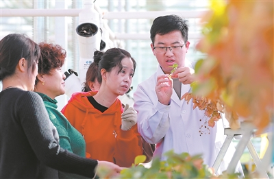 甘肅省張掖市培黎職業學院玻璃溫室育苗區的芫荽悄悄發芽了。得益于現代化智能溫室管理系統,在室外氣溫-18℃的條件下,溫室里卻溫暖如春。該溫室投入運行以來,學校現代農業學院將“無土育苗、營養液配制、植物病蟲害防治、測土配方施肥”等專業課程實踐教學和實驗實訓相結合,在實踐中帶領學生和當地農民學習專業知識。