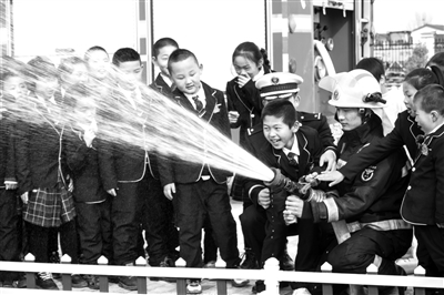 近日,甘肅省張掖市臨澤縣屯泉小學學生在消防員指導下體驗高壓水槍的使用方法。該校聯合縣消防大隊開展“消防安全進校園”活動,通過火災疏散演練、參觀消防器材裝備、體驗使用消防器材、消防安全知識講座等方式,提升學生消防安全意識,增強自我保護能力。