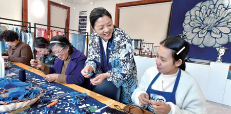本報訊(記者 史望穎 通訊員 王國海)非遺如何賦能鄉村振興?浙江紡織服裝職業技術學院“張劍峰非遺科研創新團隊”給出的答案是:推進傳統工藝振興,不斷豐富非遺的應用場景。近日,寧波奉化區西塢街道雷山村的“喜曼藍富”非遺共富工坊內,該校副教授、藍印花布印染技藝代表性傳承人張劍峰身著傳統技藝植物印染的裙子,手上拿著新印染的藍布,在給婦女們講解藍印花布的印染、制作、設計等課程。