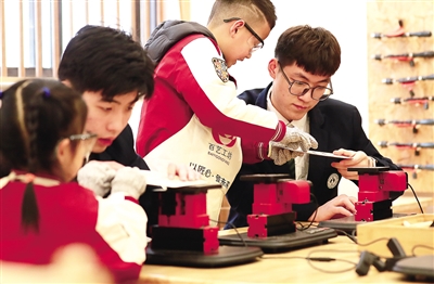 為提高男幼師生的實踐創新能力,學校還專門為他們量身打造了教玩具制作實訓室、創意木工坊、科學探究室等實訓室;開設了“玩教具制作與開發”“幼兒園創辦與管理”“早教機構創辦與運營”等特色創新創業課程;組建了“萬能工匠”“童心玩教具創新工作室”“機器人科技小組”等男生興趣小組。