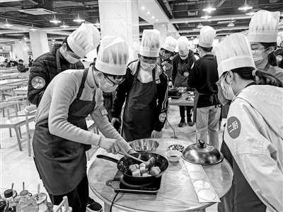 在“美食與生活”實踐操作課上,同學(xué)們系上圍裙,在大廚的指導(dǎo)下切肉、點火、煎炒、放調(diào)料……一盤色香味俱全的紅燒肉便出鍋了。“做飯是一種樂趣,但它并不是一件容易的事。因此,我更加感恩平時每天為我做飯的媽媽。以后,我也會努力讓家人吃上我為他們做的美食。”一名學(xué)生上完實踐操作課后說。