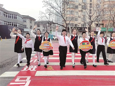 本報訊(記者 魏海政)日前,山東省濟南市槐蔭區多部門聯合,在濟南市營市東街小學為青少年設立了濟南市首條“紅領巾斑馬線”:在傳統斑馬線的基礎上,增加了醒目的紅色,并標明“紅領巾斑馬線”。
