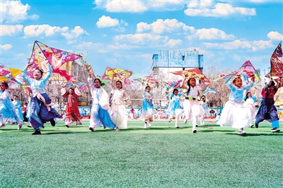 近日,在新疆昌吉市第十小學風箏文化藝術節上,學生們正在進行放風箏比賽。新疆昌吉市第十小學教育集團開展以“強國少年童箏繪趣”為主題的風箏文化藝術節,讓孩子們在歡樂氛圍中感受中華傳統文化的魅力。
