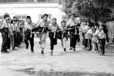 4月25日,貴州省黔西市協和鎮石人村石人小學學生在課間玩五人竹竿跑游戲。近年來,協和鎮大力推進鎮村教育均衡發展,村小運動場所和設施設備不斷改善,同時各校引導學生積極參加課間活動,讓鄉村孩子增強體質、愉悅身心。 周訓超 攝