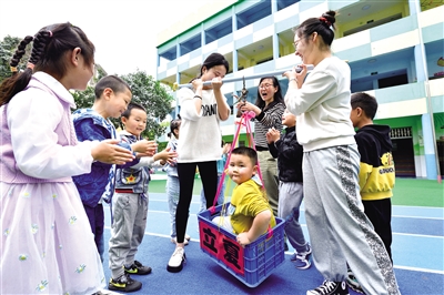 5月5日,湖北省襄陽市??悼h縣直機關(guān)幼兒園教師用傳統(tǒng)方法給孩子稱體重。立夏將至,該幼兒園開展繪彩蛋、稱體重等活動,讓孩子們感受立夏傳統(tǒng)民俗。楊韜 黃丹 攝