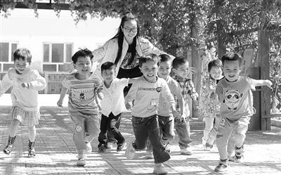 5月25日,新疆哈密市伊州區花園鄉中心幼兒園,鹽城師范學院學生胥林君陪小朋友玩游戲。鹽城師范學院從2009年啟動新疆實習支教計劃,到目前已派出27批次、948名學生,今年共有50名學生進疆。學前教育專業學生曹彥瑾和胥林君的到來,緩解了當地幼兒園師資不足的問題。本報記者 張學軍 通訊員 徐曉亮 攝