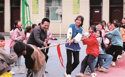 還沒放下碗筷,學生就在食堂門口等他,男生叫他打籃球,他個子高,都愿跟他一邊;女生叫他蕩跳繩,他力氣大,繩兒蕩得高、蕩得久。貴州省遵義市桐梓縣黃蓮鄉馮秀英小學校長周廷猛的中午“十分搶手”,比上課時間還忙,而他也總是笑呵呵地一一答應。