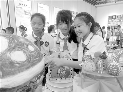 近日,廣西南寧市天桃實驗學校教育集團天桃校區舉辦少兒美術作品展,共展出全校一至六年級學生的課堂習作3000余件。本次展覽打破了課堂教學邊界,讓學生感受美、發現美,提高學生們的藝術素養和創造能力。圖為學生在參觀展覽。