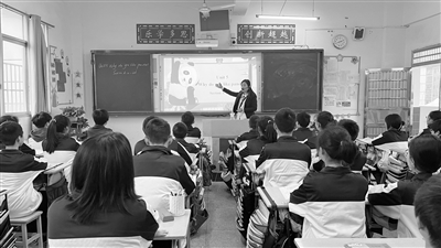 日前,在南康區第五中學七年級(8)班的一節英語課上,任課教師杜鑫像往常一樣提前來到教室,打開為”五分鐘思政小課堂“準備的教學幻燈片,播放大熊貓樂樂、丫丫的新聞視頻。學生的注意力被視頻畫面牢牢吸引。