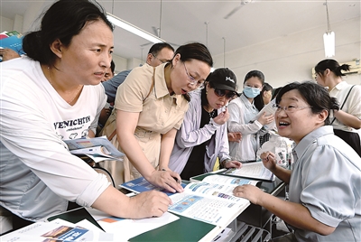 6月25日,在河北省邯鄲市第一中學(xué)舉行的“2023年高招咨詢會”上,考生和家長在了解高校招生信息。當(dāng)日,近百所全國知名高校教師為考生和家長介紹招生信息、開展志愿填報指導(dǎo)工作。郝群英 攝