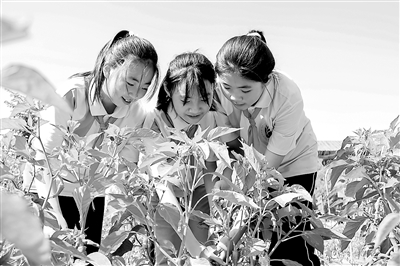 近日,甘肅省張掖市臨澤縣板橋鎮中心小學學生來到該校“紅領巾農耕園”,采摘辣椒、黃瓜等各種時令蔬菜。該校近年來積極開辟校內勞動教育實踐基地,讓師生們體驗勞動的快樂。本報記者 尹曉軍 通訊員 汪永海 沈貝 攝