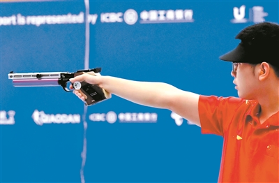 8月1日,成都大運會射擊項目男子10米氣手槍決賽,中國隊選手胡凱一路領(lǐng)先,最終獲得冠軍。