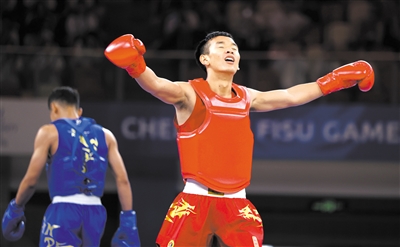 8月3日,中國(guó)選手馬衣姑(右)在成都大運(yùn)會(huì)武術(shù)項(xiàng)目散打男子60公斤級(jí)決賽中獲得冠軍。新華社記者 賈浩成 攝