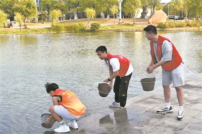 近日,在全國首個校園水利風景區——南昌工程學院瑤灣水利風景區內,50名大一學生共同為花草澆水、修枝,熱火朝天地勞動著。