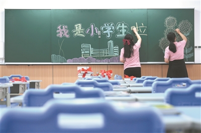 8月27日,在重慶市北碚區兩江春暉小學,兩名教師在繪制黑板報。新學期臨近,重慶市各校教職員工紛紛回到校園,做好開學前的各種準備工作,迎接新學期到來。