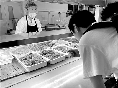天津理工大學后勤管理處處長龐亮介紹,這項舉措是學校貫徹落實主題教育為師生辦的實事之一。暑假里,在與餐飲公司進行協商后,學校在兩個學生食堂分別開設“2元經濟套餐”窗口,每天提供6個菜供學生選擇,逢年過節還會增加到8個菜。現在,每天來窗口吃飯的學生從一開始的二三百人增加到現在的四五百人。