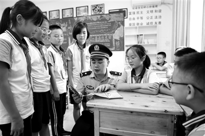 9月11日,在貴州省赤水市第二小學,民警向學生講解網(wǎng)絡安全知識。連日來,貴州省赤水市公安局以國家網(wǎng)絡安全宣傳教育周為契機,組織開展網(wǎng)絡安全進校園等活動,引導學生安全用網(wǎng)、文明用網(wǎng)、依法用網(wǎng)。王長育 攝