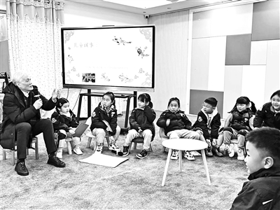 網上流傳著一張照片,著名教育專家成尚榮和孩子們一起席地而坐。當時他已年近八旬,他也自知,那一蹲一站于他是吃力的,但在兒童“沸騰的審美情緒”面前,他還是選擇了跟兒童一樣的姿勢與他們對話。