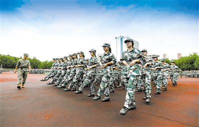 9月14日,江蘇大學2023級本科新生在進行訓練。近日,江蘇大學組織2023級本科新生開展軍訓,新生們在軍訓中磨礪意志品質,上好大學“第一課”。楊雨 攝