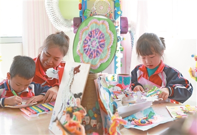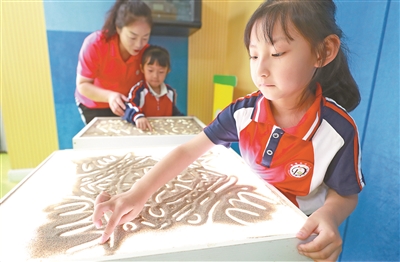 活動(dòng)室里,孩子們?nèi)齼蓛傻啬弥嫔彻ぞ撸麄儎?chuàng)作的莫高窟九層樓、鳴沙山月牙泉等風(fēng)景名勝有模有樣;陶藝室里,玩泥巴的孩子們聚精會(huì)神地搓、捏、揉,不一會(huì)兒“飛天仙子”形象躍然手中,惟妙惟肖……走進(jìn)甘肅省酒泉市敦煌市幼兒園,當(dāng)?shù)仉S處可見的石頭、沙子、泥巴都成了孩子們學(xué)習(xí)、游戲、藝術(shù)創(chuàng)作的資源。近年來,該園以弘揚(yáng)中華優(yōu)秀傳統(tǒng)文化為切入點(diǎn),將敦煌文化與幼兒園教育相融合,園內(nèi)人人都能講敦煌故事、跳敦煌舞。
