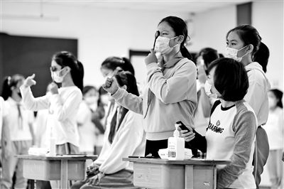 近日,天津市和平區(qū)中心小學(xué)教師在進(jìn)行校園視力常態(tài)化普查。和平區(qū)教育局依托天津醫(yī)科大學(xué)眼科醫(yī)院設(shè)立的天津市中小學(xué)生視力健康管理中心的專業(yè)力量,每學(xué)期選派教師參加視力篩查技能培訓(xùn),至今已有747名教師取得“中小學(xué)生視力篩查專業(yè)技能證書”,達(dá)到百人一名篩查教師的標(biāo)準(zhǔn)。本報(bào)記者 陳欣然 攝