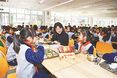 “我們學校開發了‘食全食美’食堂特色品牌,將食堂工作與學校課程有機結合,整合了勞動課程、傳統文化課程、節日課程等,四年級學生學習制作小饅頭,五年級學生動手包餃子,六年級學生中秋節做月餅,在傳承中華傳統文化的同時,培養學生動手能力,讓食堂也成為實踐大課堂。”基隆路小學校長邱琳說。