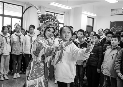 近日,江蘇省海安市文化志愿者們走進海安高新區(qū)海光小學,將戲曲課程引入“第二課堂”。通過戲曲展演、戲曲名家進課堂、戲曲社團交流等活動形式,讓學生們近距離感受傳統(tǒng)藝術文化的博大精深。通訊員 翟慧勇 攝