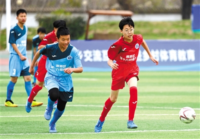 11月25日,西安高新區(qū)第十八初級(jí)中學(xué)學(xué)生在陜西第六屆公益足球邀請賽上進(jìn)行比賽。陜西公益足球邀請賽暨鄉(xiāng)村學(xué)校公益足球課堂自2018年創(chuàng)辦以來,已成功舉辦5屆,受益青少年超6500人次。