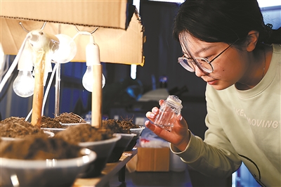 在降水變率控制試驗平臺,博士生霍天賜在記錄最近的降水量。受氣候變化影響,極端降水事件頻發(fā),降水變異性增強。團隊想通過控制各實驗小區(qū)的降水量,探究降水變異對半干旱草原生產力和碳循環(huán)過程的影響機制。