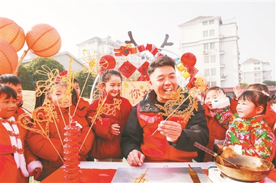 1月12日,在江蘇省如皋市城南街道新華社區新華幼兒園內,小朋友們在觀賞糖畫制作。當日,江蘇省如皋市城南街道新時代文明實踐所、新華社區婦聯聯合新華幼兒園舉辦“傳統游園會 歡樂迎新春”活動,小朋友觀賞糖畫制作,學習做年糕,體驗剪窗花,體驗傳統民俗,喜迎新春佳節。徐慧 攝