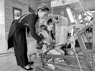 龍州縣有著豐富的非物質文化遺產,其中地域特色明顯的天琴演奏、壯錦技藝等深受師生喜愛。該縣各中小學校堅持“走出去”“請進來”的培訓方式,邀請本土“非遺”傳承人走進校園,向師生手把手傳授“非遺”技藝,選派90余名優秀教師向“非遺”傳承人學藝,培養出一支專業技術過硬的“非遺”教育與傳承團隊。