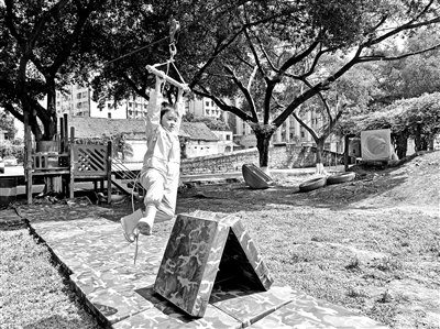 活動過程:為了支持孩子們實現(xiàn)心愿,我們在幼兒園里增添了“極速滑索”游戲項目,孩子們玩得花樣百出、樂此不疲。教師和孩子們一起,利用戶外的小土坡和攀登架,在草坪四周的大樹上,拉起了兩條結實的滑索道。在高高的滑索上,孩子們握緊把手騰空而起,一飛沖天,心中有興奮和雀躍,更感受著些許的緊張和刺激,對飛行員叔叔的感知也從“眼見”“耳聞”,轉(zhuǎn)化為“親歷”“實感”。
