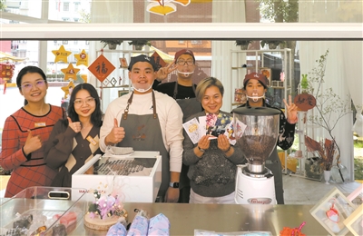 這是一個由街道、學校和愛心企業共同開辦的學生職業實踐項目,由愛心企業員工組成的杏福店長志愿者團隊與學校實習學生一同經營,銷售的商品都是在校生制作的手工藝品。購買手工藝品的市民會免費得到一杯學生現場制作的咖啡。新華社記者 方喆 攝
